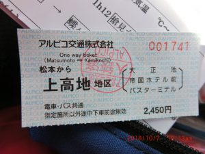 名古屋駅7:00発のしなの1号で松本駅9:08着。松本駅から9:21上高地線に乗り換え新島々駅へ。新島々からは10:10のバスに乗り換え、上高地に着いたのは11:15だった。