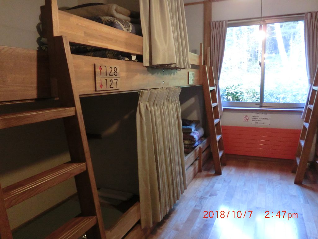 このブログで何度も紹介している部屋。女性専用8人部屋で私は127の下段。