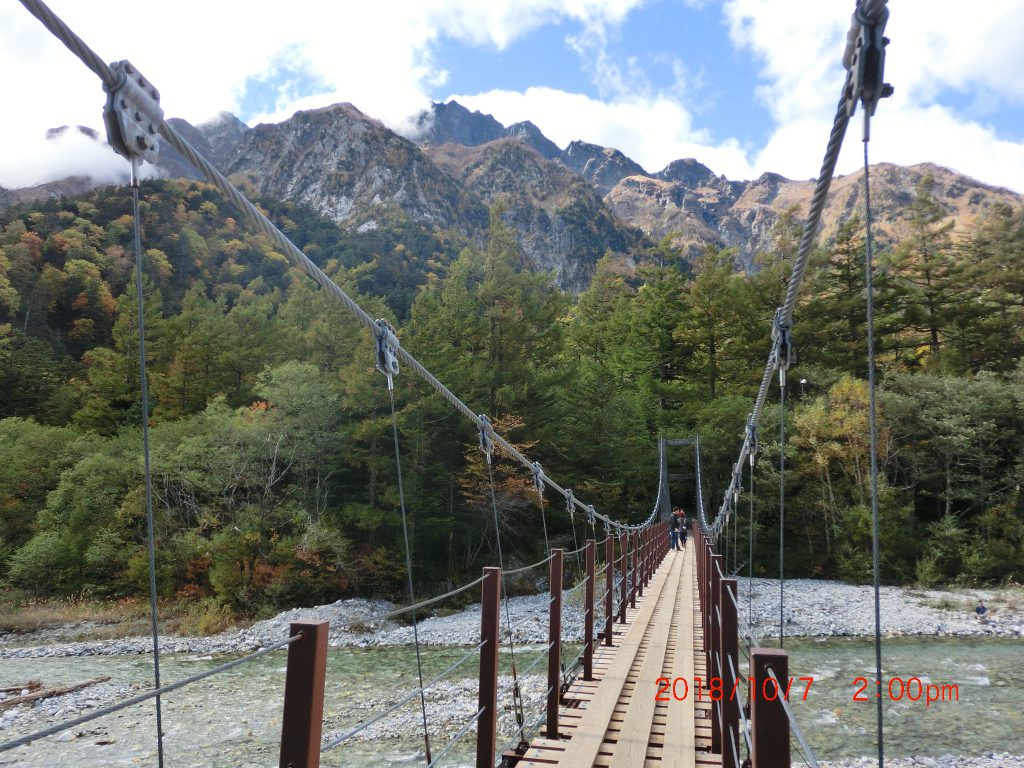 この橋を渡って右に行くと、パノラマコースで涸沢に行ける。